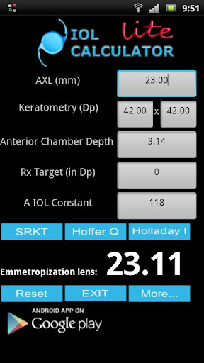 Poco a poco el trabajo de programación para Android va dando sus frutos. Ayer colgué en Google Play la demo del programa de cálculo de lentes intraoculares para smartphones Android.