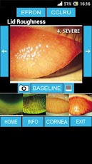 Esta dividida en 2 grupos -CORNEA - LIDS - (párpados) en los cuales siempre se puede consultar por separado cada una de las 2 escalas. Esto permite un acceso rápido a todas las imágenes disponibles para localizar lo que estamos buscando. Posteriormente sólo hay que desplazar las imágenes hacia la derecha o la izquierda para ver como va aumentando el grado de afectación ocular hasta encontrar la imagen más parecida a la que vemos en nuestro paciente.