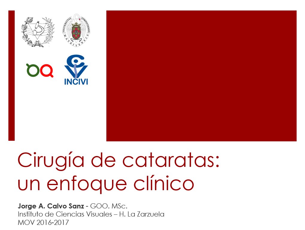 He sido invitado a compartir mi experiencia como optometrista en la cirugía de cataratas con los alumnos del Máster en Optometría y Visión, así que iré a las 15:30h a contarles mis puntos de vista, intentando dar un enfoque clínico y práctico a esta faceta de la optometría.